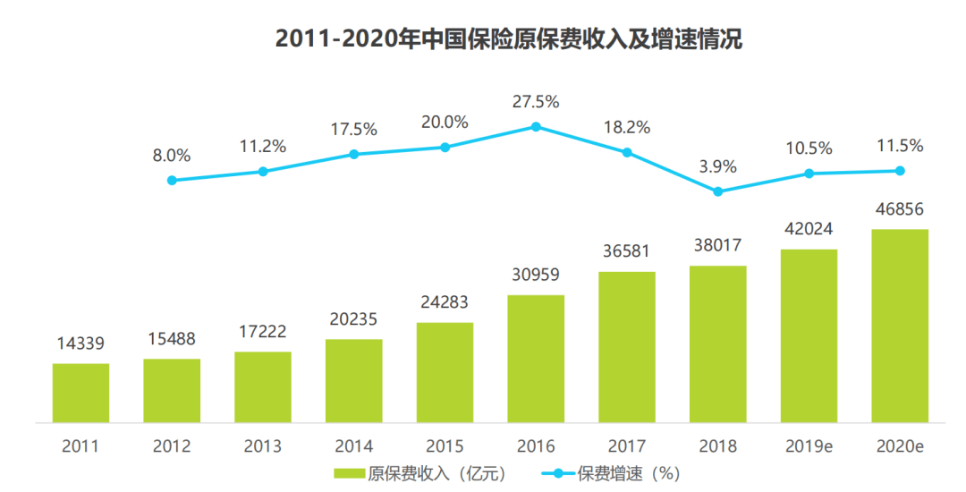 我们先假设一个前提,保险市场依然按照过去的速度增长,每年保费的增量在4000亿元左右。