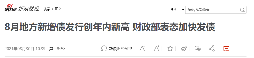 据报导,8月份地方政府新增债券发行规模创年内新高,有券商更预计9月地方债净融资额可能达到万亿元。